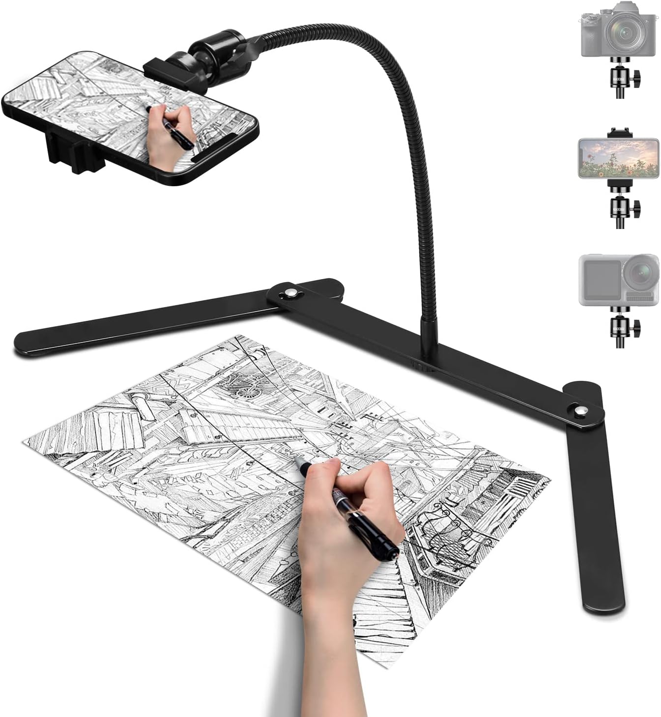 - 易於使用,這款手機三腳架可用於水平和垂直拍攝,並且可以在桌子、廚房櫃檯和其他工作台上自由移動。 用於拍攝靜物、文件、繪畫、錄像、學習、烹飪、直播等。 這款多功能三腳架支架無需長時間握住手機。