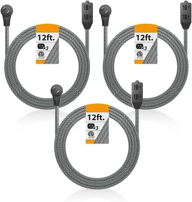 [3 個插座編織電源線電源線電源線] 從一個接地插座創建三個插頭轉接器。它有兩側三個插座,有足夠的空間容納三個標準尺寸插座。此插座使用編織延長線為您的家庭或辦公室空間增添裝飾,同時保持電源線無結,更堅固,更耐磨。